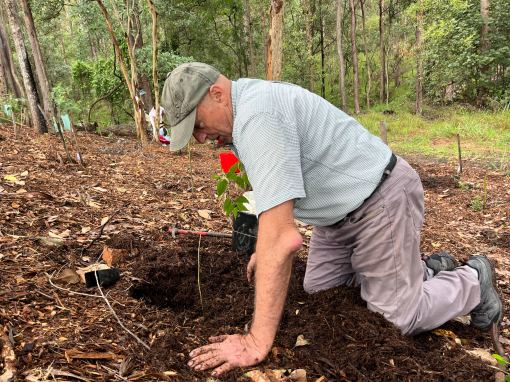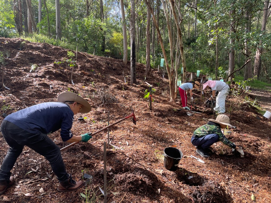 At our first working bee onsite in 2022 we planted two hundred and fifty local grasses, vines, shrubs and trees.