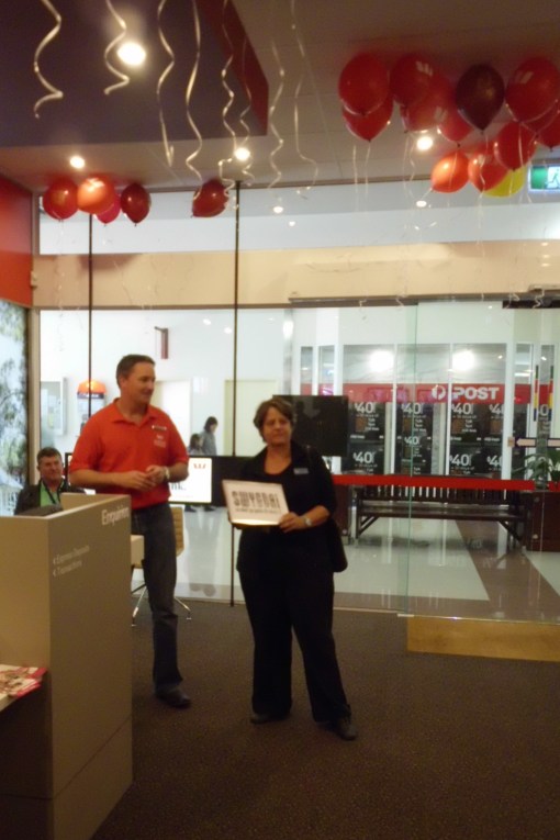 local volunteers, Branch Manager Paul Dennett presented Nancy Hodge with a ‘Community Champion’ certificate for her work with Mt Gravatt Environment Group.