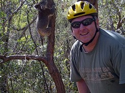 Sunday morning 4th December and John McCrystal and a friend were riding Shire Road to the summit of Mt Gravatt. John, a member of Team Fatboyz, was practicing for the Rio Tinto Ride to Conquer Cancer – August 18-19, 2012, he certainly didn’t expect to encounter two Koalas running down the road towards him!