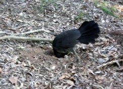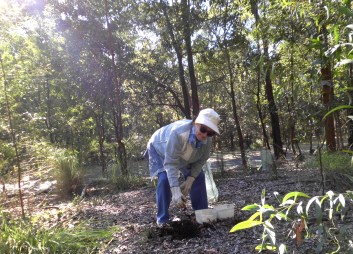 On Saturday 28 July, we had ready another 40 plants to be put in by volunteers who couldn’t join us on Wednesday. When I arrived on site, I found a female Brush-turkey Alectura lathami checking out all the holes prepared for planting. Her curiosity and anticipation of a free meal made me laugh.