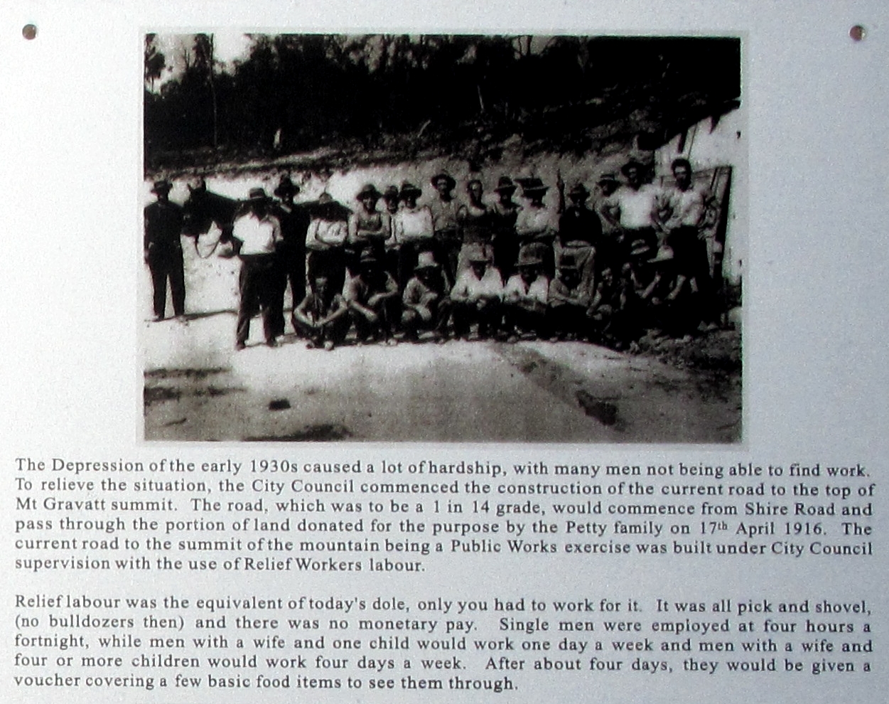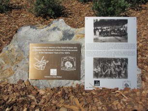 Clare Boulter, President Mt Gravatt Historical Society, and Lord Mayor Graham Quirk have unveiled a plaque honouring the Relief Workers who first built what is now Mt Gravatt Outlook Drive. The plaque in the garden at Mt Gravatt Lookout was unveiled at a community event on 26 August.