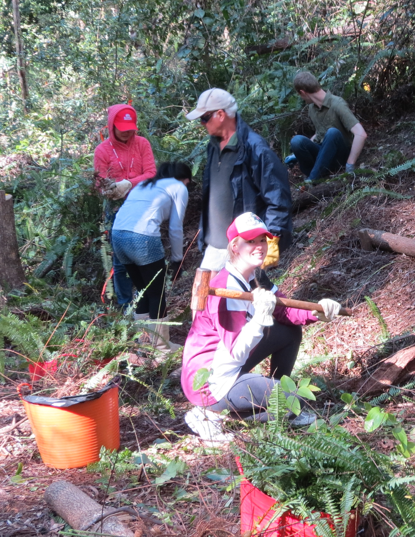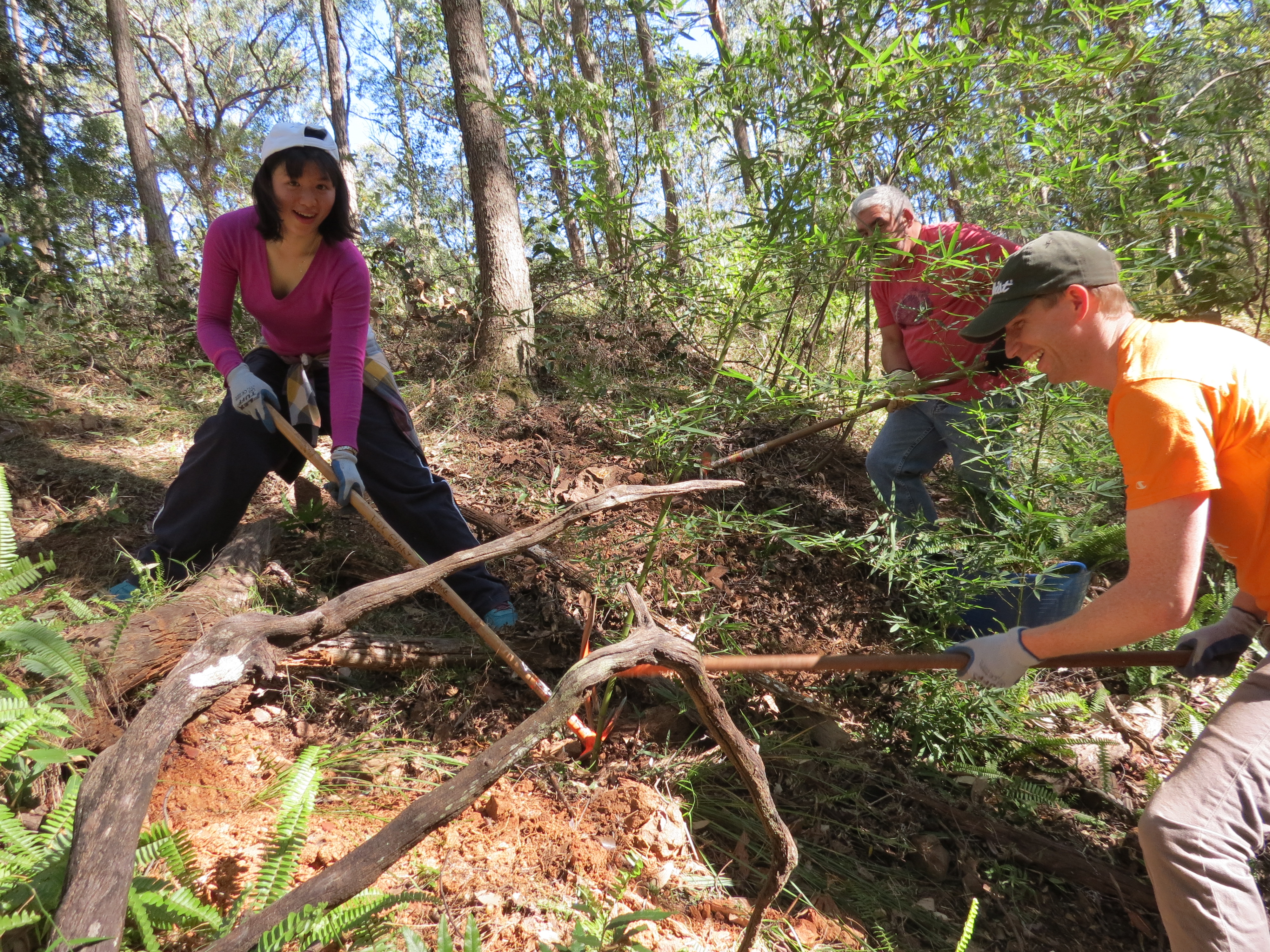 Bushcare participants get to do a bit of everything at Fox Gully. Wielding a sledge hammer is change from writing assignments.