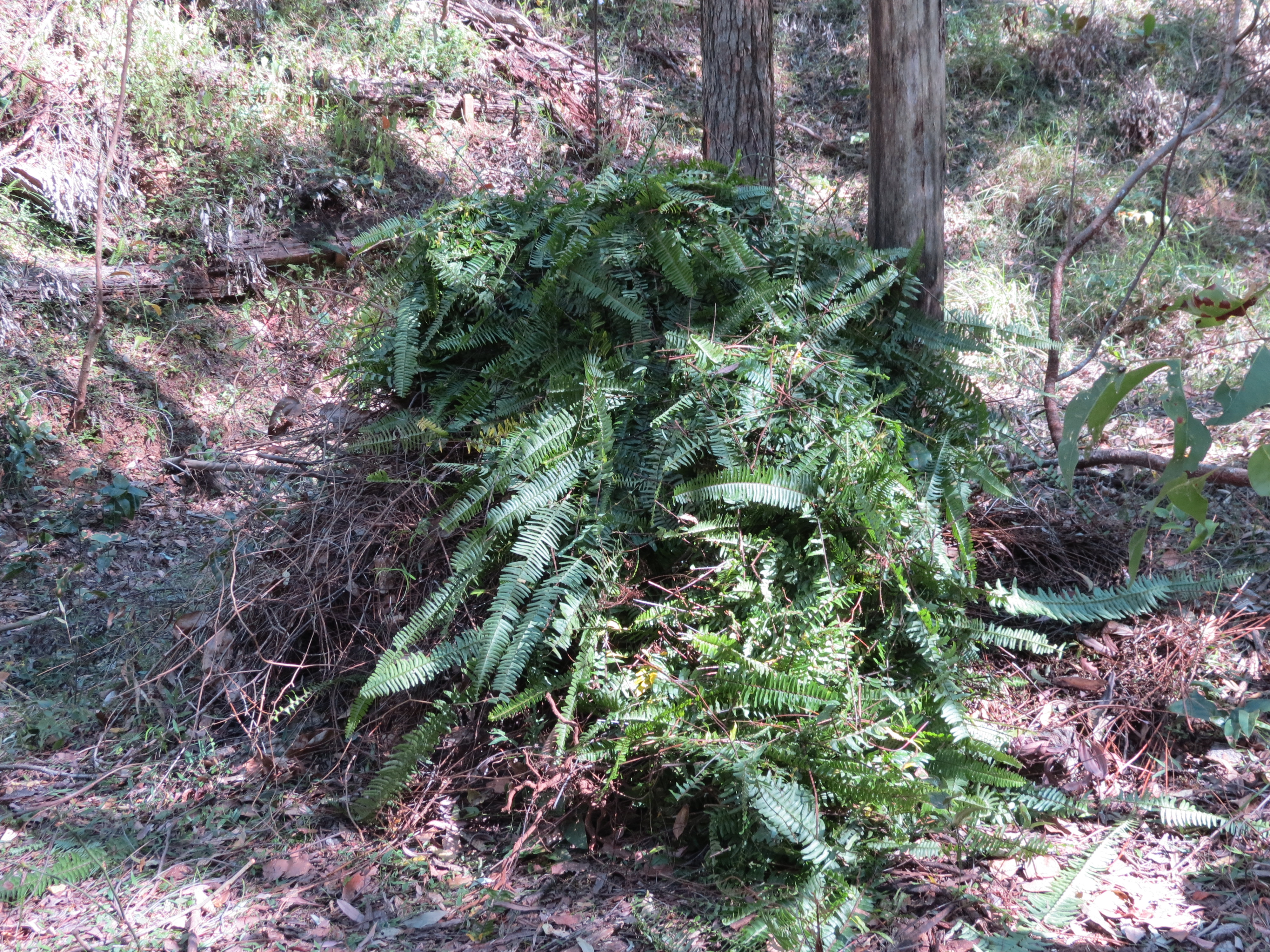Walking through the Sagano bamboo forest, in Arashiyama, Japan, was a special experience. A bamboo is forest is beautiful and peaceful producing strong versatile valuable wood. However bamboo does not belong in the Australian bush. Once established in the Reserve the bamboo spread and over a huge area crowding out native plants and making monoculture so thick it was impenetrable to wildlife. Removing bamboo is a hard work as all the roots have be dug out by hand for disposal off-site.