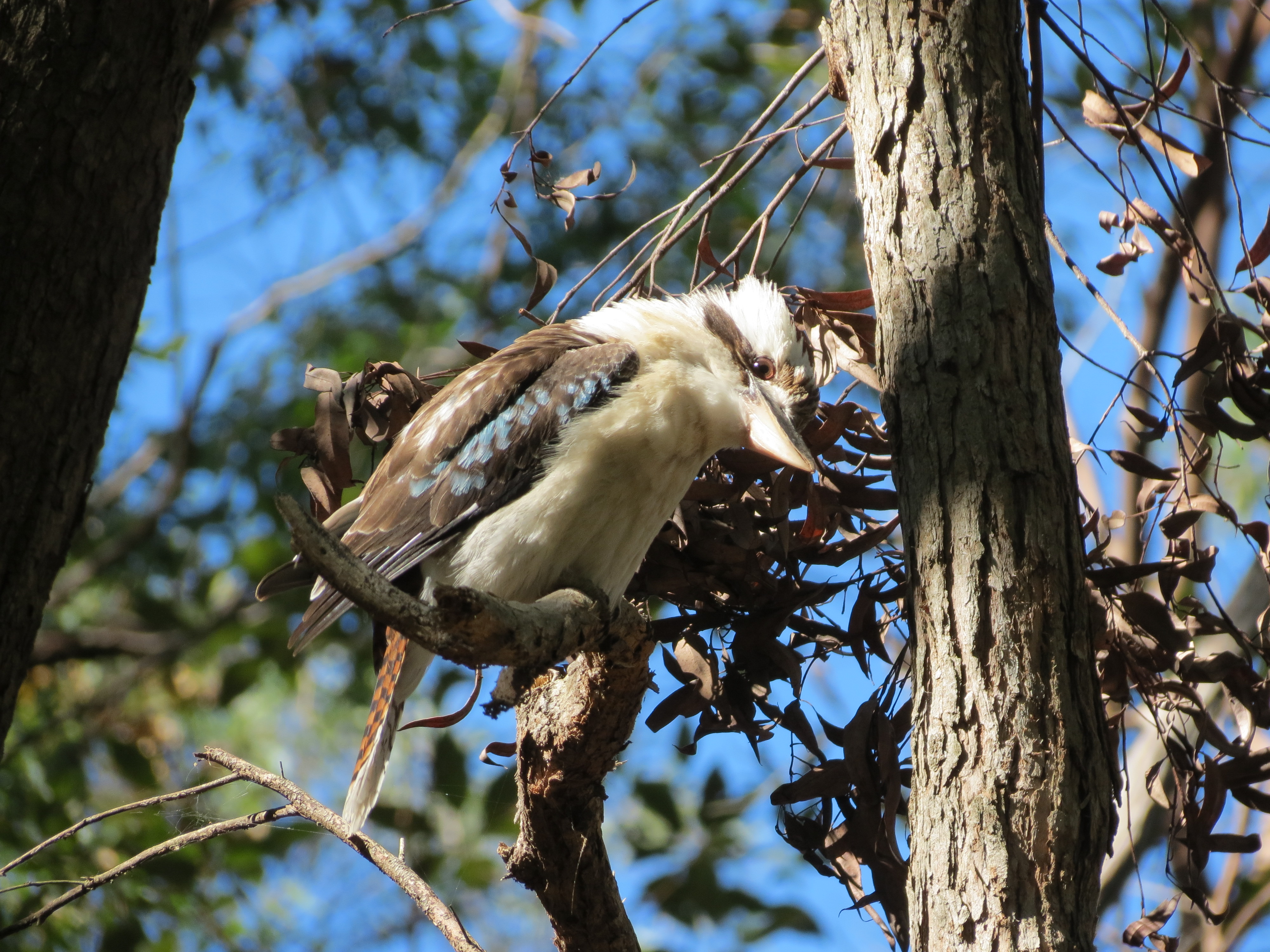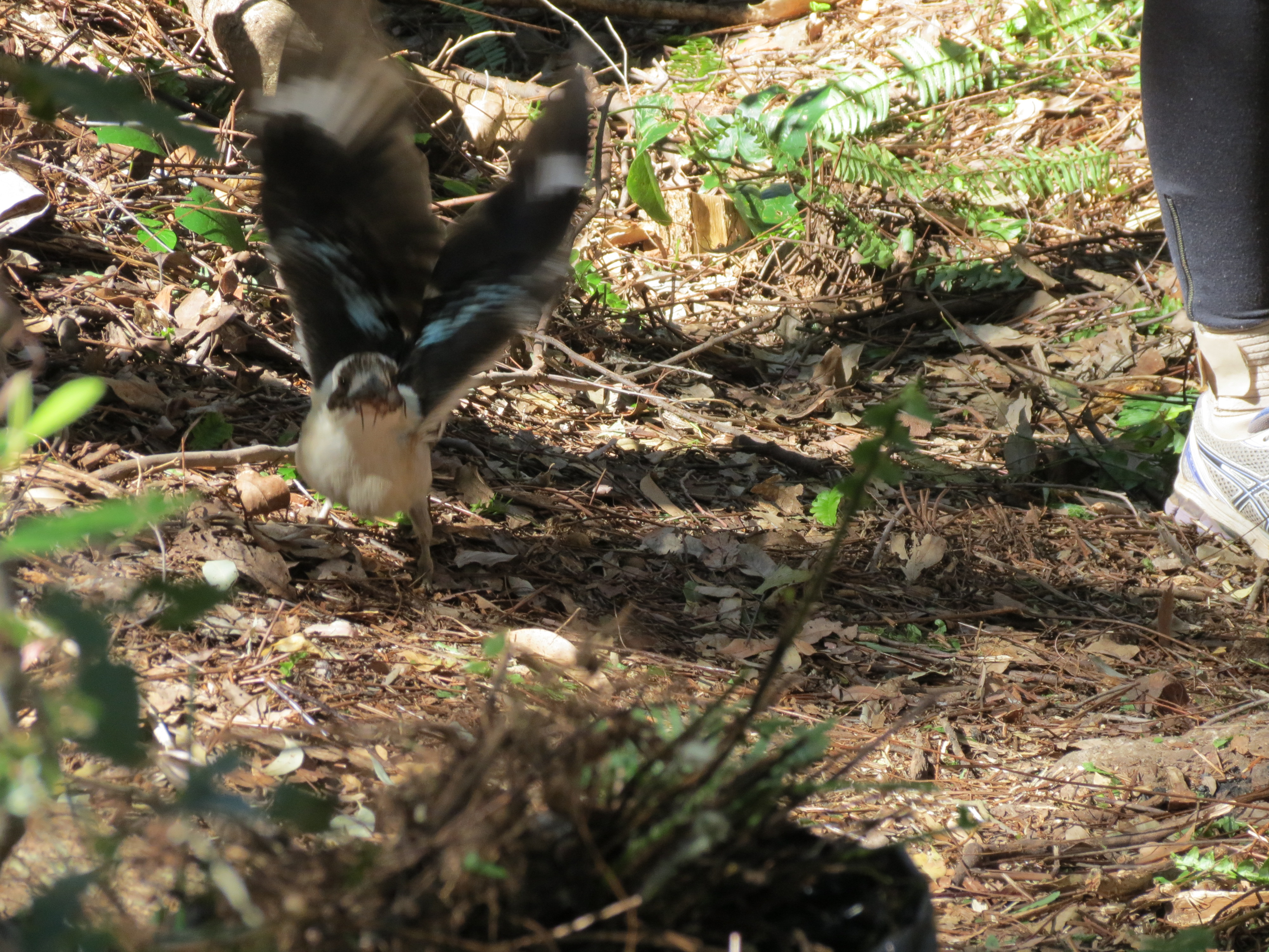 They even met some of the local wildlife. The male Brush-turkey Alectura lathami was working on his nest mound when the team arrived. Then one of the local Kookaburras came to visit looking for a feed in the area that has been cleared.