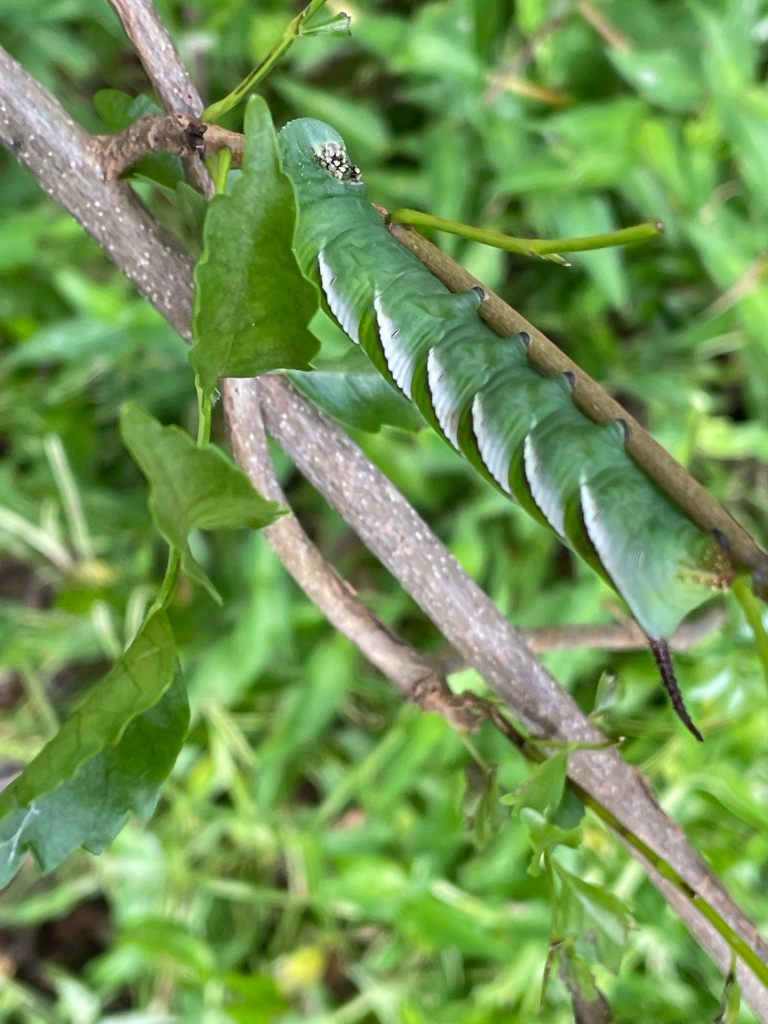 Hawkmoth caterpillars can be identified by their characteristic spike tail.