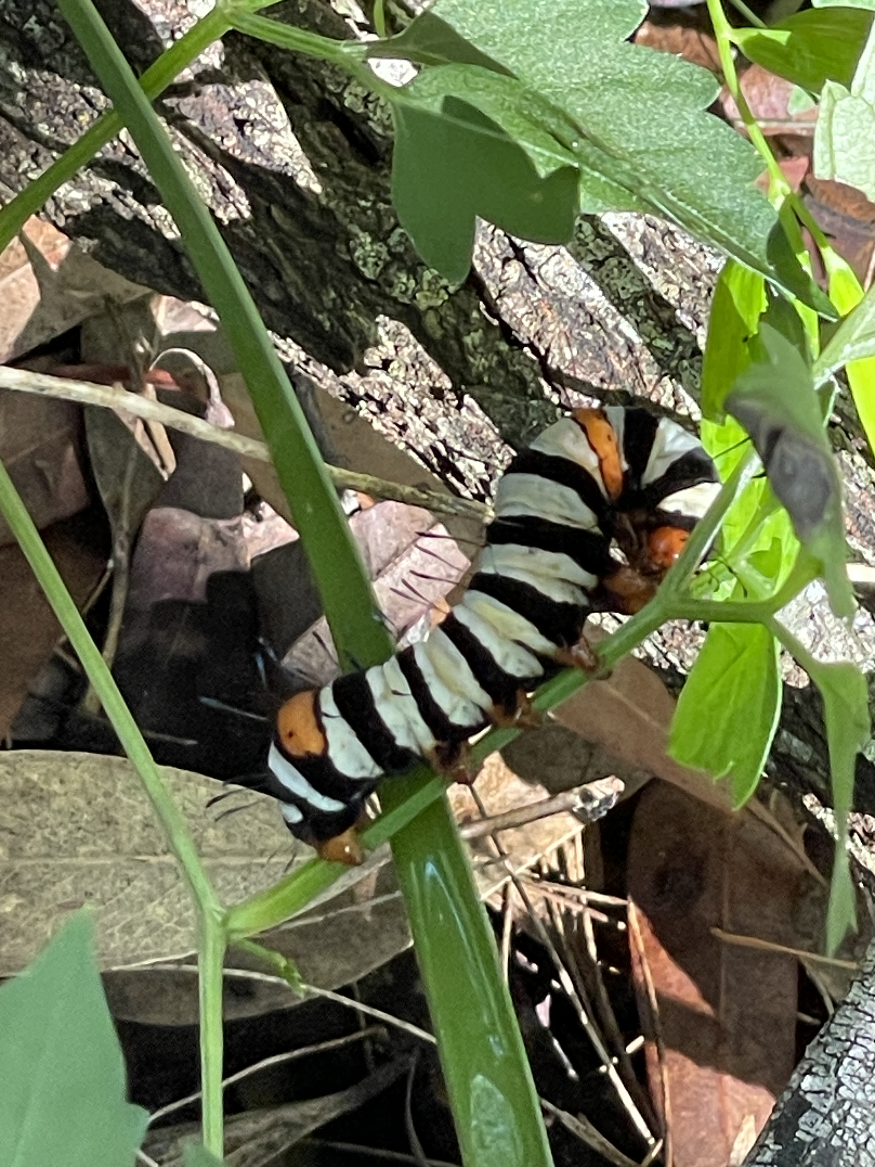 We also found a Joseph’s Coat Moth Agarista agricolamoth feeding on Slender Grape Cayratia clematidea.