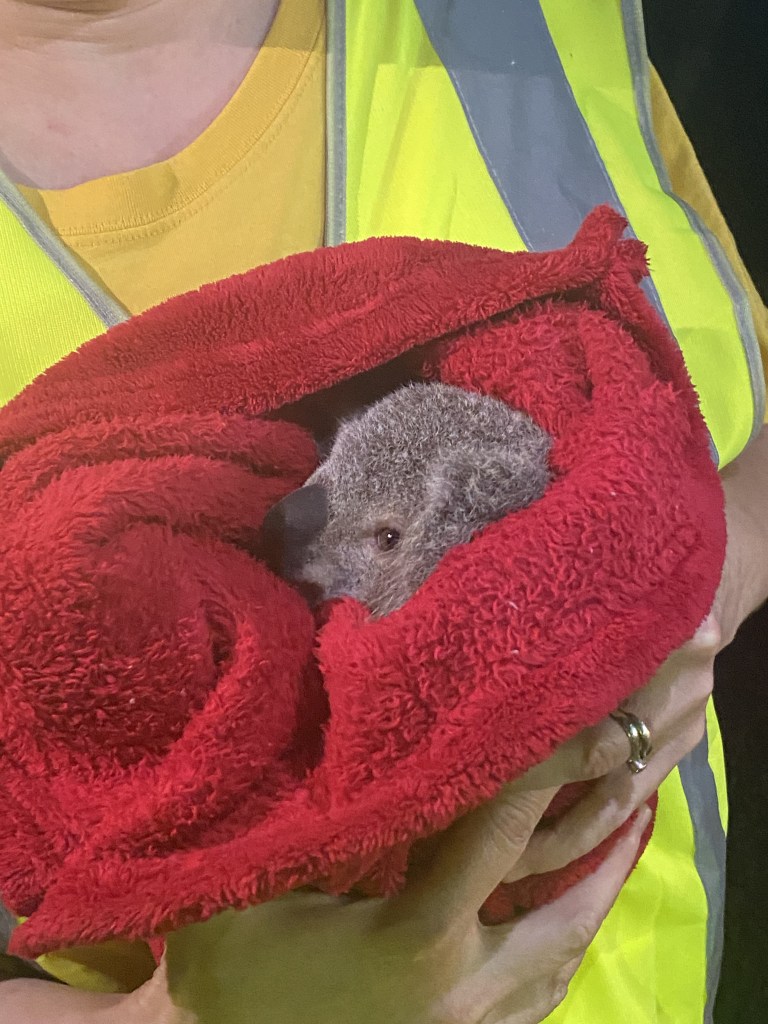 The first was found early morning having been hit at night. Koala Mum, Angela, didn’t make it, she died leaving Joey Monty an orphan in care.