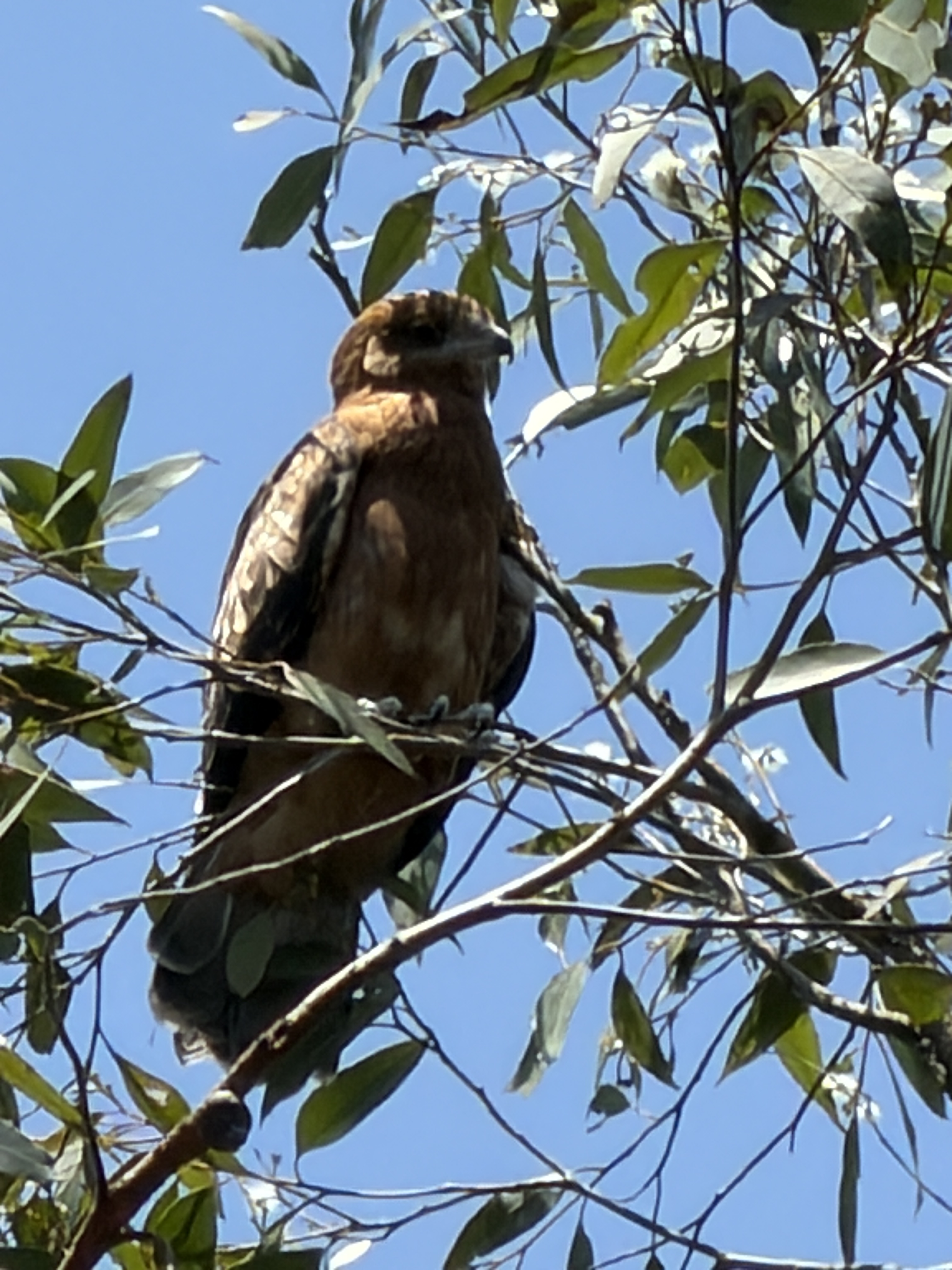 The Square Tailed Kite Lophoictinia isura chicks are fledging and moving from their nest to nearby tree.