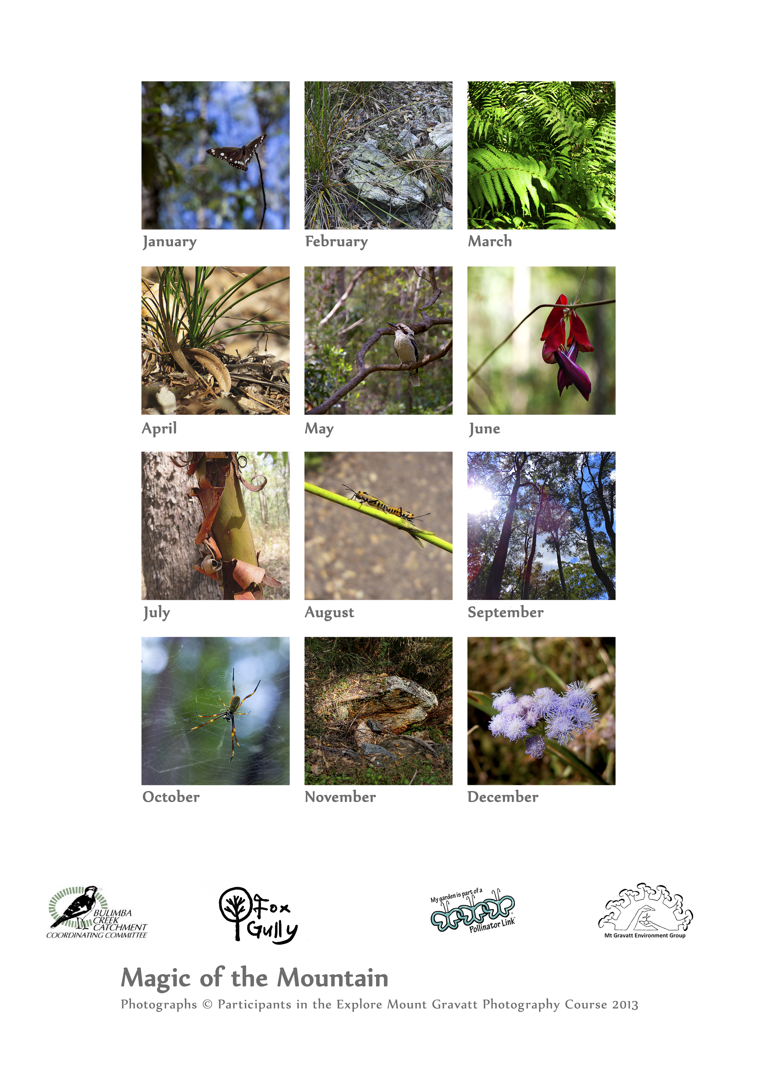 Mt Gravatt Environment Group’s 2014 Photo Calendar presents amazing photography of participants in our annual Photography Workshop.