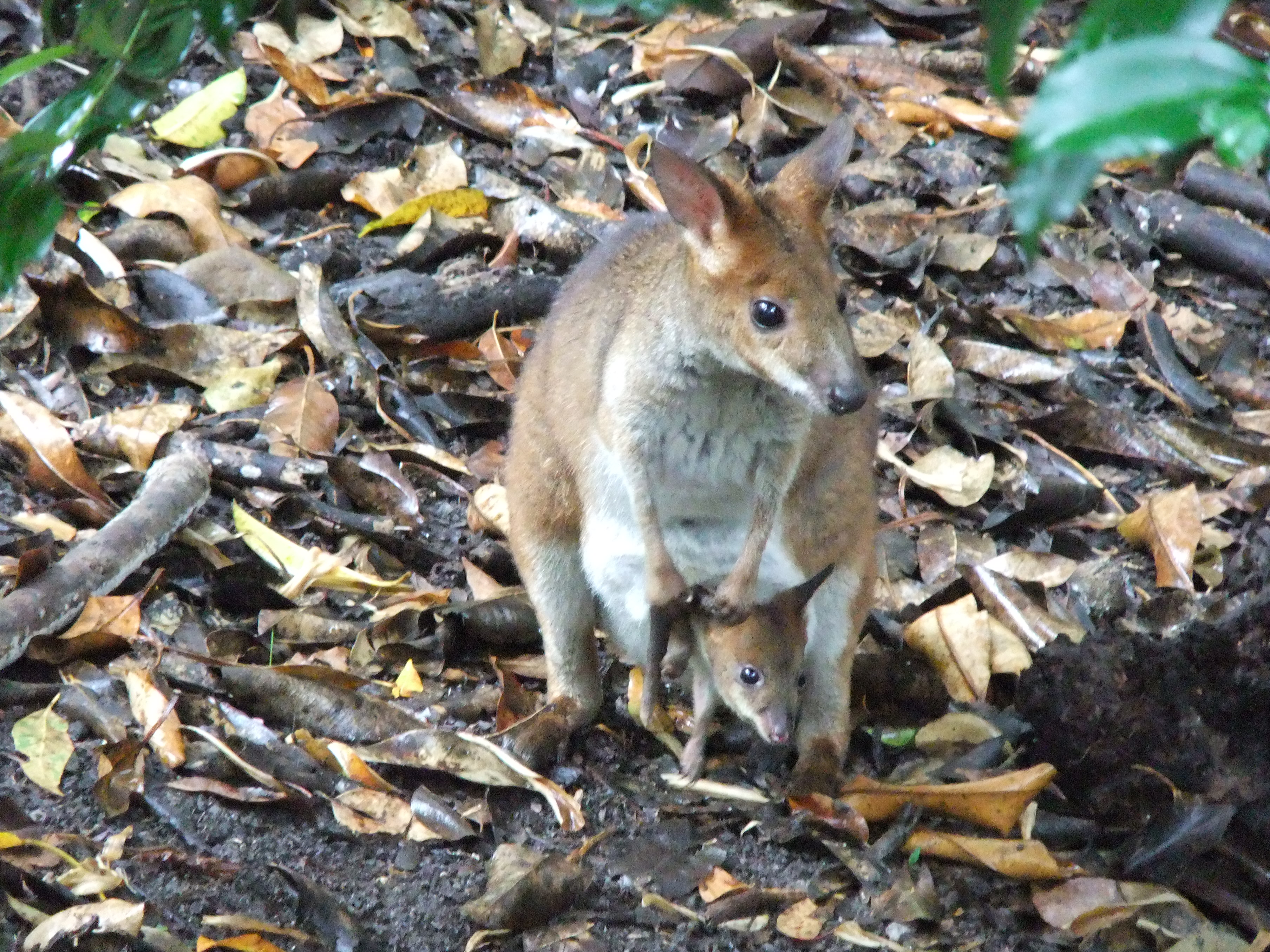 I was videoing the Cassowary when Totsu squealed. She had spotted this Paddymelon with a joey poking its head from her pouch.
