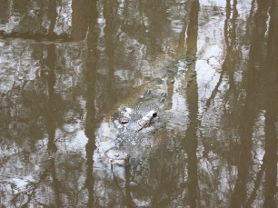 In the Wetlands Habitat we found this male salty lurking. The staff told us that he had been fed yesterday and would not be hungry, however, he did seem to quietly drift closer as we stood on the bridge. “Tasty tourist snack … mmmm.” Click on the photo to enlarge and get the full effect.