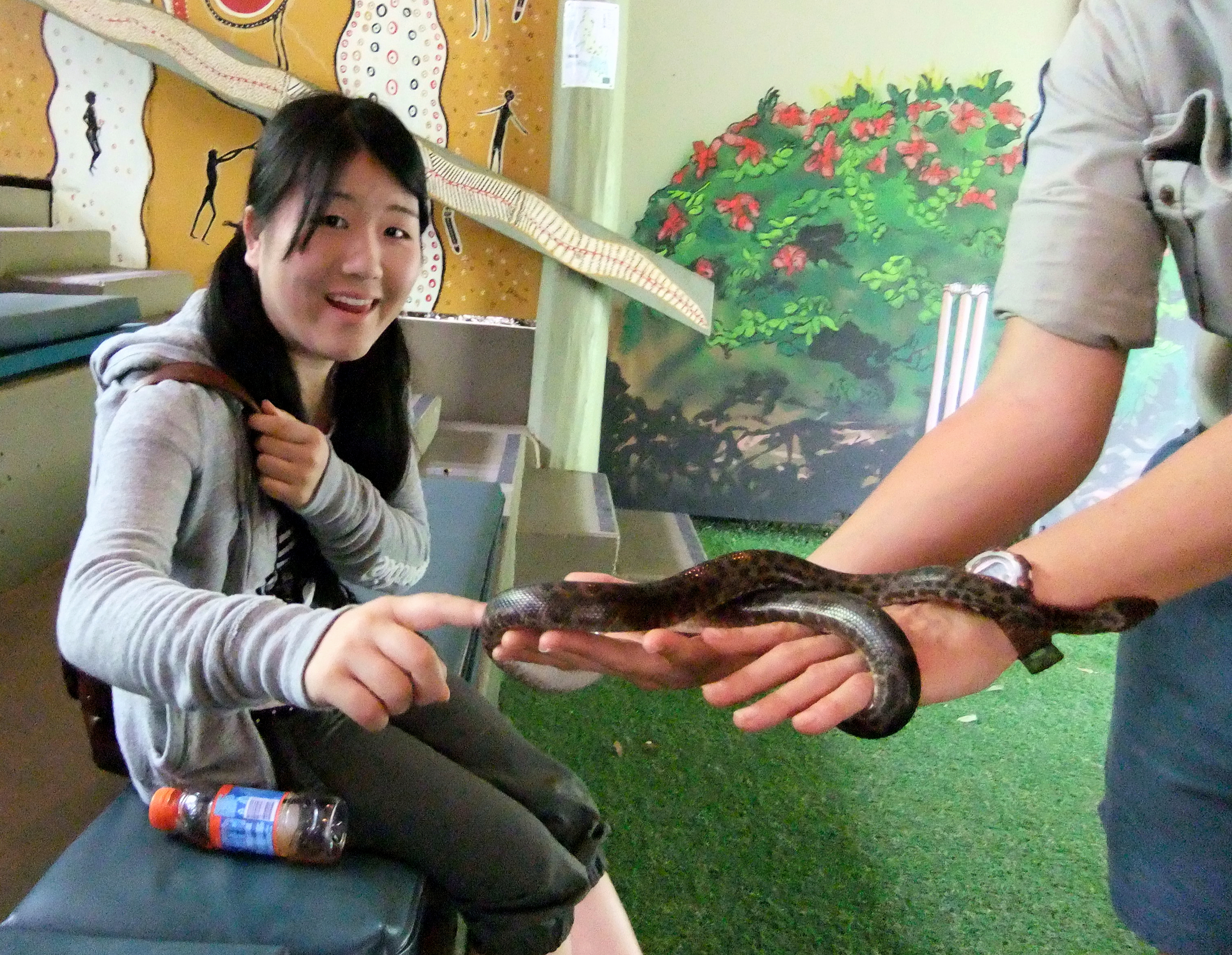After watching a Kangaroo sitting is a tree we went to the Snakes up Close presentation where Totsu showed real courage reaching out to touch the python being demonstrated.