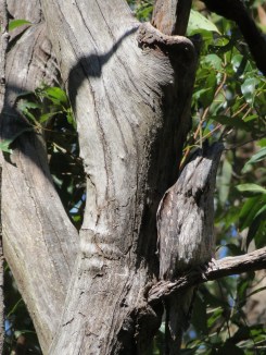 Of course there is always someone who relaxes and wonders what the fuss is about. We almost didn’t see this Tawny Frogmouth pretending to be a dead tree branch. He deigned to half open an eye to check us out then dismissed us and went back to being a dead branch.