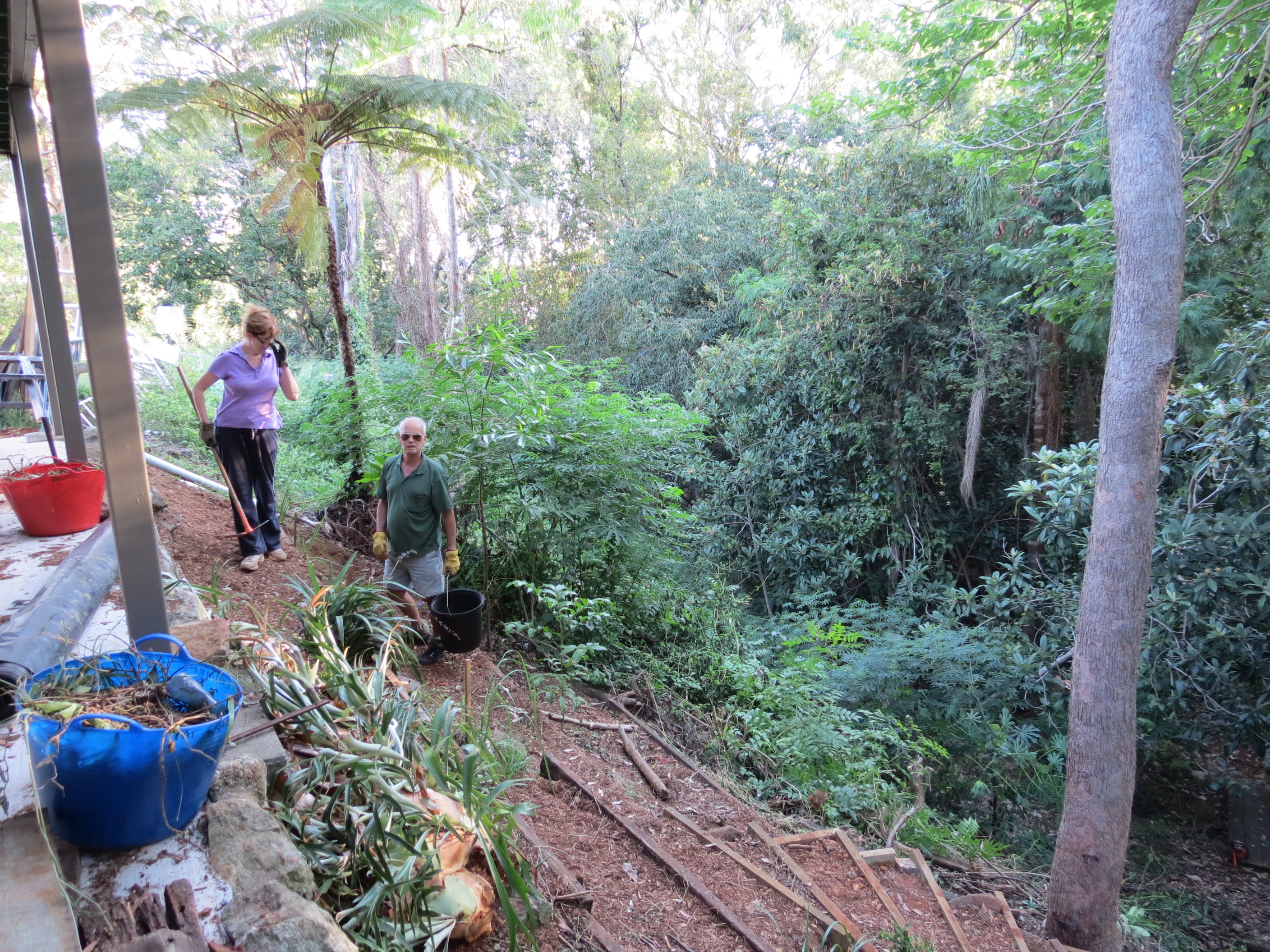 Crossing Mimosa Creek was sensitive and restoration a work particularly important to manage erosion. One bonus was removal of a large area of invasive Balloon Vine Cardiospermum grandiflorum and Madeira Vine Anredera cordifolia, as well as, a large Camphor Laurel Cinnamomum camphora.