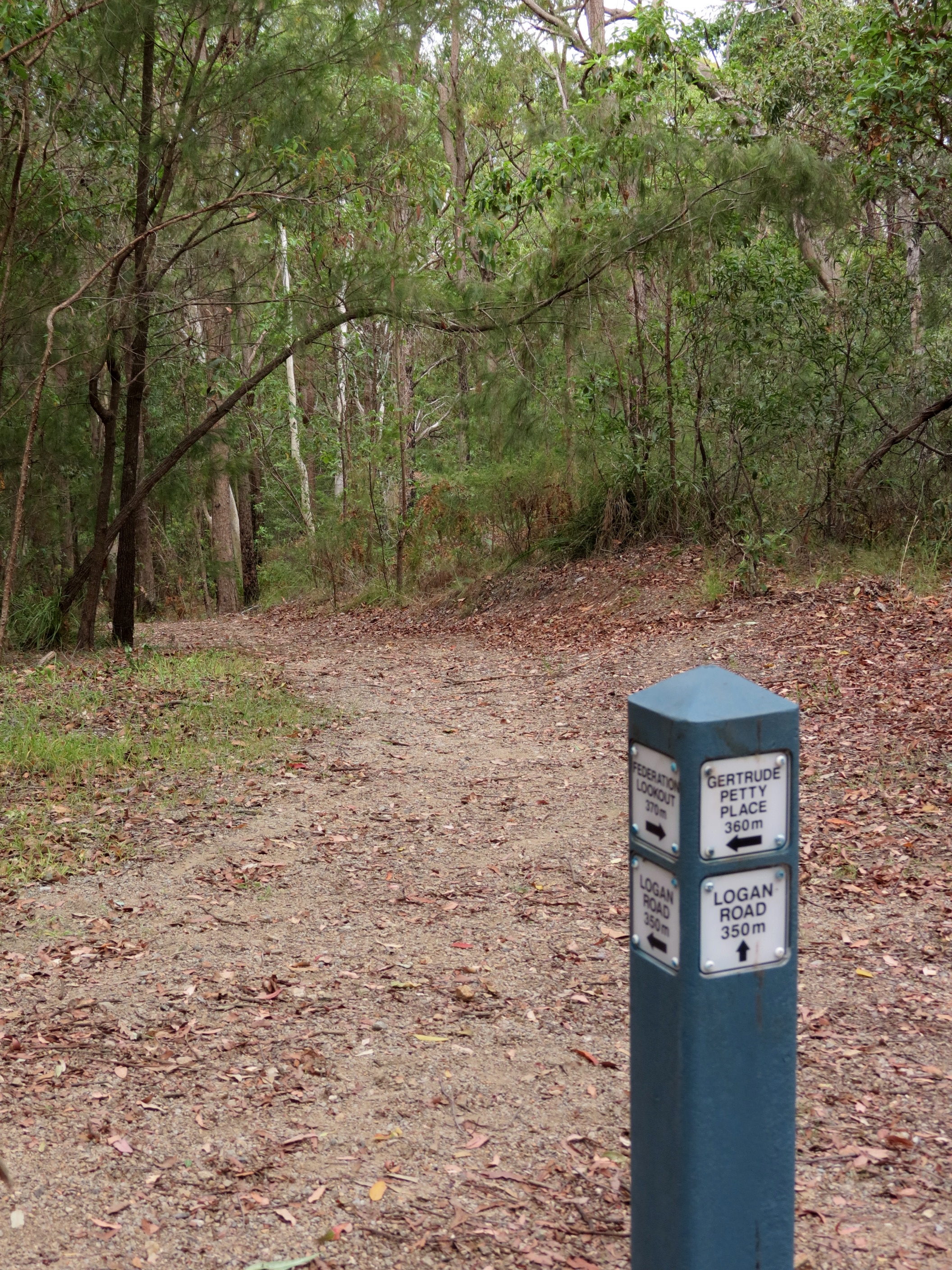 Scribbly Gum Track junction – links to Logan Road at old Scout Hut