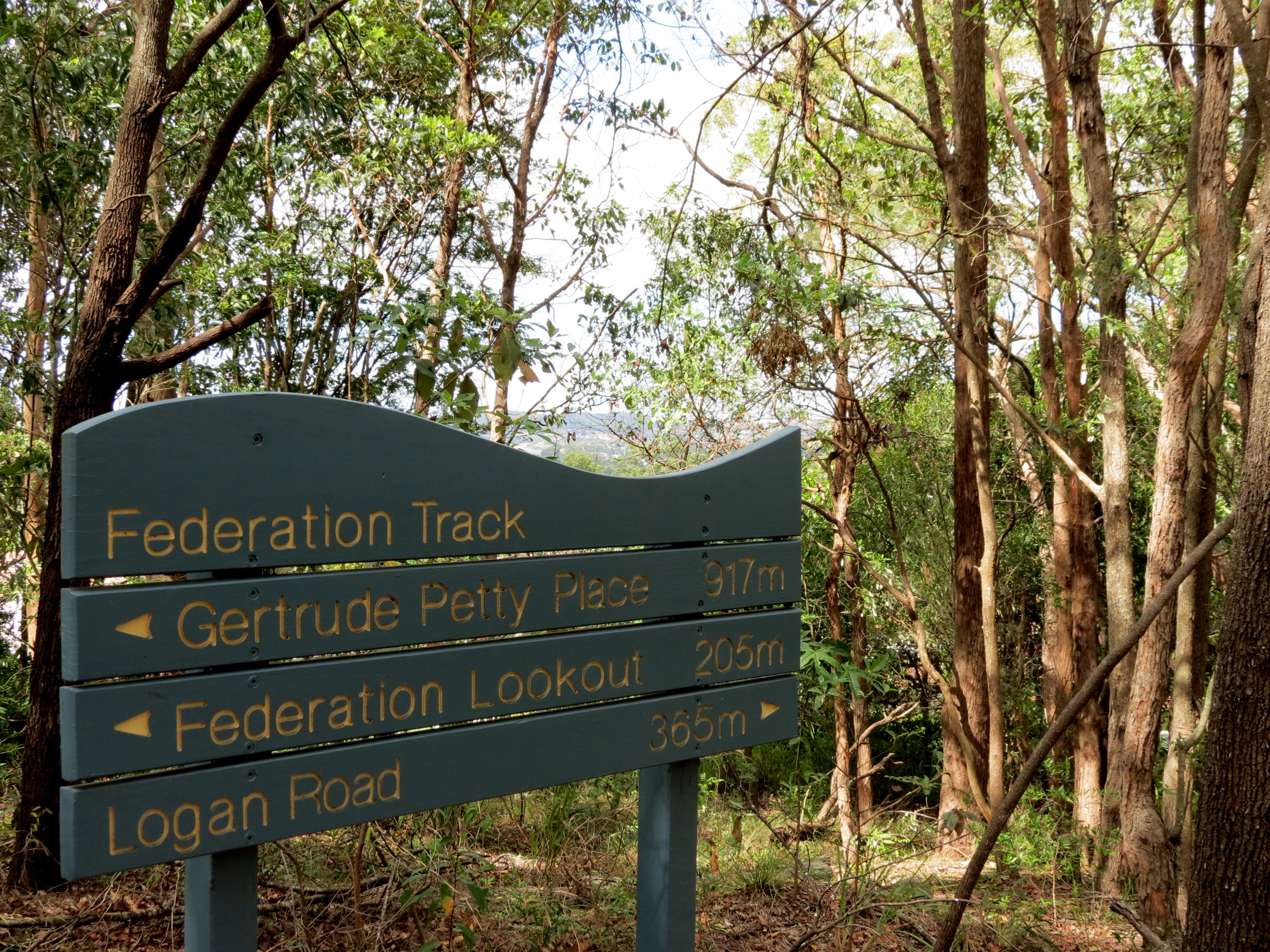 The Scribbly Gum Track links through to Logan Road at the old Scout Hut opposite Wishart Road. You can park at the Scout Hut to walk directly to Federation Lookout. The walk is quite interesting as it crosses Jo’s Creek before climbing towards the lookout..